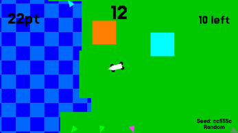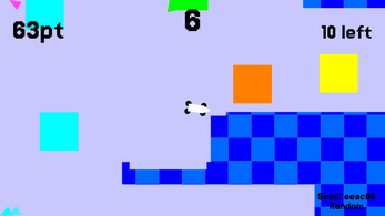 In the game, you collect coloured checkpoints, which give you anywhere from one to five points. Each round lasts 20 seconds, and once the round is over (or you fall into the water), you're given a fresh batch of ten checkpoints until you've amassed a hundred points. Additionally, you get an extra few points if you ever collect all ten for the round.